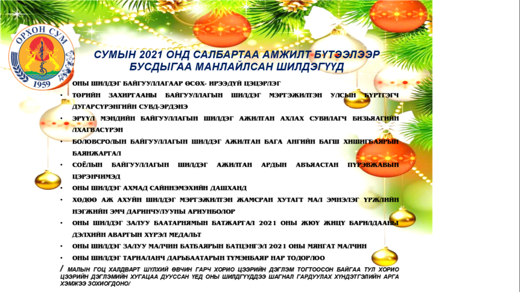 2021 ОНЫ ШИЛДЭГҮҮД Post author: Post published:December 31, 2021 Post category:ОНЦЛОХ Post comments:0 Comments You Might Also Like МЭНДЧИЛГЭЭ December 31, 2021 Тусгаарлалтад байгаа сурагчдыг есдүгээр сарын 2-5-нд ЭЕШ-д хамруулна July 21, 2021 ЗАРЛАЛ December 1, 2021 Leave a Reply Cancel replyCommentEnter your name or username to comment Enter your email address to comment Enter your website URL (optional) Save my name, email, and website in this browser for the next time I comment. Δ